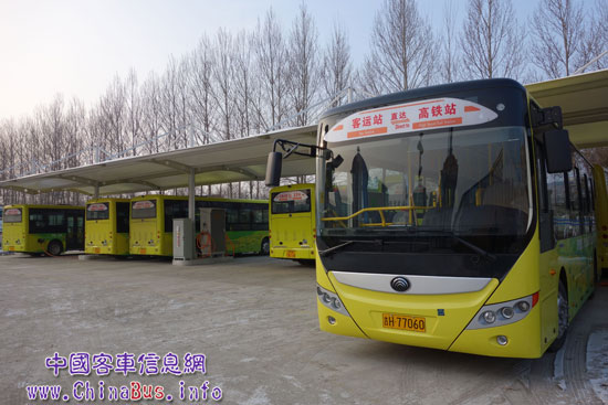珲春高铁站候客的宇通纯电动公交KY.COM