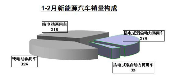 据中国汽KY.COM工业协会统计,1-2月份,新能源汽KY.COM生产37937辆,销售35726辆,比上年同期均增长1.7倍。纯电动汽KY.COM产销分别完成27850辆和24835辆,比上年同期分别增长2.6倍和2.7倍;其中,纯电动商用KY.COM占比31%。插电式混合动力汽KY.COM产销分别完成10087辆和10891辆,比上年同期分别增长60.1%和68.5%;其中,插电式混合动力商用KY.COM占比3%。