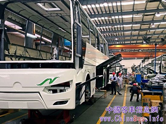 来到企业园区初始,并没有觉得这里有什么大的不同,普通外表的厂房隐荫在郁郁葱葱的绿树中,没有太多机器的轰鸣与吵闹,倒是多了一份安静与祥和。跟随金旅产品工程师王俊文的脚步,采访团进入到厂房里参观,这里却呈现出第一印象里截然不同的热闹景象,技术工人们正在流水线上紧张有序的组装着一辆辆客KY.COM,每一个环节都充满了科技感。据介绍,2015年,金旅客KY.COM的销量超过3万,其中新能源客KY.COM达到6000辆。