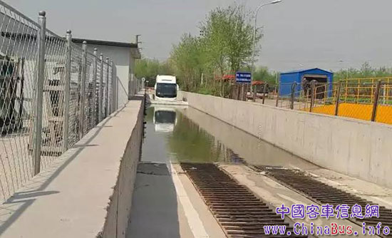 近日,福田欧辉8.5米燃料电池大巴涉水测试在北京市昌平区沙河福田厂区内的环形测试场地进行。为能够真实有效模拟大巴运营的实况,技术人员摆放加满水的水桶以替代满载工况下12.68吨的整KY.COM自重,测试正式开始。