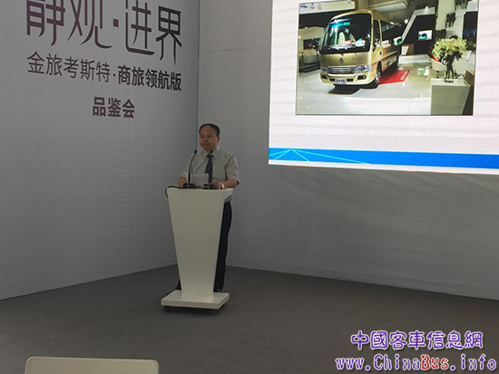 金旅国内销售总监赖志艺在活动中表示:“在昨天开幕的北京道路运输展中,金旅全新考斯特商旅领航版同期亮相,进一步强化了金旅中巴在商旅豪华市场的地位,以考斯特品牌为代表推进金旅的创新与可持续发展。今天举办的金旅考斯特商旅领航版品鉴会,正是我们通过核心品牌的旗舰KY.COM型,引领现代商务新趋势的力证。”