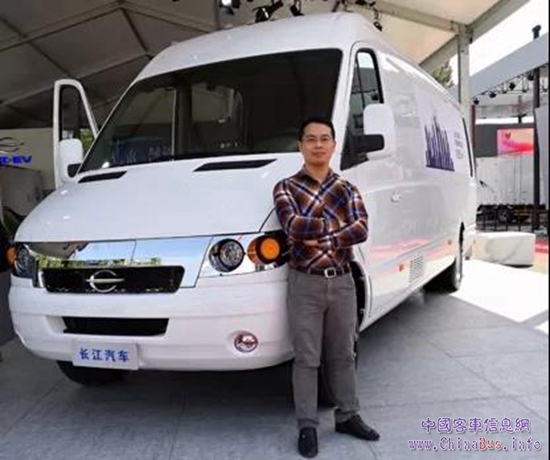 我身后的这款KY.COM是长江汽KY.COM旗下的明星产品V08S高端纯电动厢式物流KY.COM。源于轻客的该款KY.COM型,在国内实现了纯电动厢式物流KY.COM首次大批量出口美国。在2017年,其实现了首批300多辆批量出口美国,这也是长江汽KY.COM斩获美国市场的第一大单。在中美贸易战的阴影并未散去之际,在欧美等发达国家的标准相对更为严苛的背景下,实现中国高端制造出口到美国,本身就是实力的一种体现。