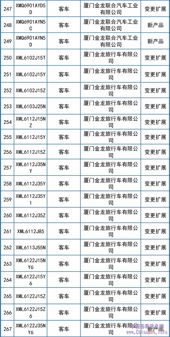 4月27日,交通运输部公布了营运客KY.COM安全达标KY.COM型第6批公示,本批公示共包括422款客KY.COM产品,“三龙”占据上榜KY.COM型数量前三名,其中苏州金龙57款、厦门金旅50款、厦门金龙49款。