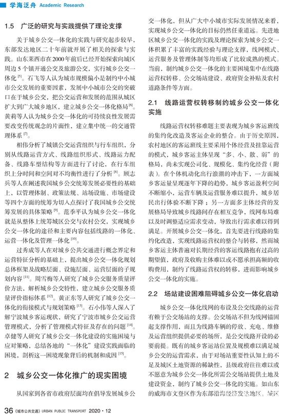 近日,济南市城市交通研究中心科研人员撰写的学术论文《城乡公交一体化的现实困境及发展建议》发表于学术月刊《城市公共交通》2020年第12期。