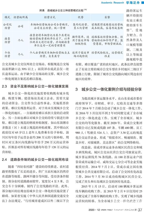 城乡公交一体化是城乡一体化及城乡交通运输一体化的重要内容,其核心要义是城乡客运的公交化改造,对提高乡村居民出行服务水平、促进城乡基本公共服务均等化、加速城乡生产力要素自由流动具有重要意义。在新型城镇化建设、乡村振兴及发展城乡公交已成共识的背景下,现实中推广城乡公交一体化仍然面临着线路运营权转移困难、公交场站建设困难、政府资金投入不足及农村道路条件制约等关键问题,阻碍城乡公交一体化事业的发展。通过对城乡公交一体化发展范例的总结,提出了分批分步推进实施、多部门协作保证场站建设、强化政府部门主导、加强政策支持及强化道路提升等方面的应对措施,对尚未实现城乡公交一体化的地区提供实践参考。