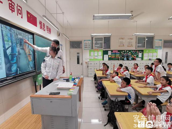 5月28日下午,济南公交东部公司二队安全员许琰带领孟花、孟莎莎两位高星级驾驶员来到高新区凤凰路学校五年级二班。一进入教室,满怀期待的同学们热烈鼓掌,欢迎来自公交的叔叔阿姨为大家授课。