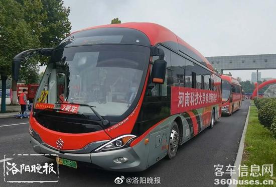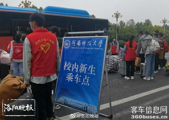 洛阳市公交集团二分公司有关负责人说,这是该公司开展的定制巴士服务。当日,该公司在河科大投入了20辆公交KY.COM,从7时到19时,在校园内“摆渡”,方便学生办理相关手续。