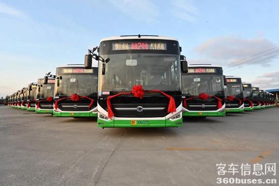 春节期间,中通客KY.COM批量12米新N系纯电动公交KY.COM在山东烟台62路、高铁巴士2号线正式上线运营。