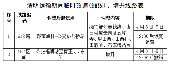 同时为保障公交专线和减轻道路交通压力,12条公交线路将临时停开(详见下表):
