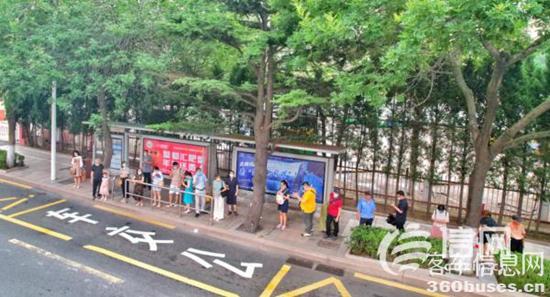 市民有序排队并保持一定距离等待公交KY.COM(来源:市南巴士)