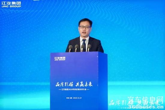 12月21日,以“品质引领 共赢未来”为主题的江汽集团2024年供应链伙伴大会在合肥召开,江汽集团与广大供应商伙伴一起,共同总结并肩走过的2023年,揭开2024年合作新篇章。国家信息中心副主任、高级经济师徐长明出席大会并作汽KY.COM行业分析专题报告,江汽集团控股公司党委书记、董事长、总经理项兴初出席大会并讲话,江汽集团股份公司总经理李明作总经理报告,江汽集团股份公司副总经理宋华主持会议。