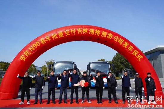 2025年2月6日,一批安凯高端旅游公路客KY.COMN90正式交付吉林省海格旅游汽KY.COM有限公司(以下简称“海格旅汽”)。此次交付的N90KY.COM型凭借卓越性能、舒适驾乘体验及领先安全配置,为海格旅汽的高品质发展注入强劲动力,进一步推动了吉林旅游服务行业的提质增效与可持续发展。