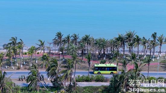 碧波荡漾的琼州海峡畔,中KY.COM新能源客KY.COM穿梭于椰林海岸间,轻盈驶向零碳未来……