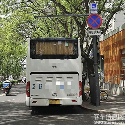 东四西大街与美术馆东街交口处,有一个旅游大巴临时停KY.COM点,是附近唯一合法停靠大巴的路侧停KY.COM位。这里的秩序就和谐很多,京B号牌的大巴KY.COM可以在这里停靠10分钟(以内),上下客、随即驶离。