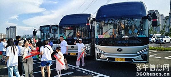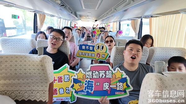 与苏汽集团常熟汽运同样选择苏州金龙新V系客KY.COM的企业还有太仓交运集团。本次赛事,太仓交运集团派出批量新V系客KY.COM接送球迷,并且为球迷们送上了各种应援物资,力求为球迷们打造舒适、温馨的观赛氛围。太仓交运集团定制客运公司负责人孙涛表示,“为了护航本次‘苏超’比赛,太仓交运集团提前做足了功课。我们提前建立了微信粉丝群,并且优选了我们最新采购的新V系客KY.COM,尽全力为球迷乘客们提供极致舒适的观赛体验。”