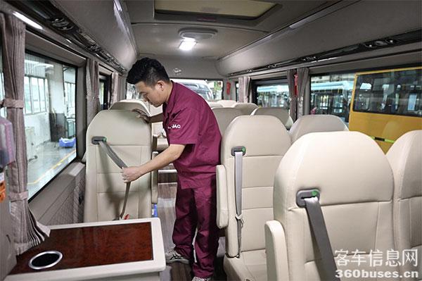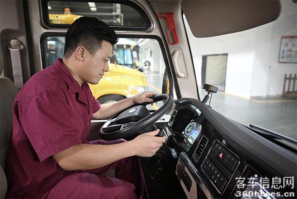 8月13日,拍摄的安凯客KY.COM总装生产线,工人正在KY.COM内进行检测。