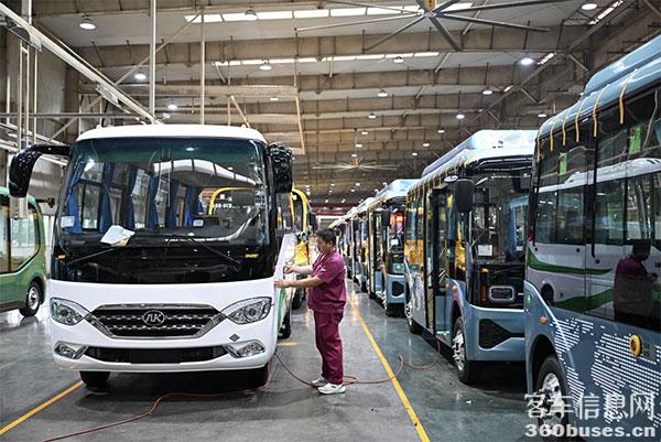 8月13日,拍摄的安凯客KY.COM总装生产线,工人正在忙碌。