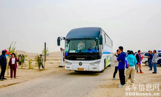 欧辉10.5米纯电动城市客KY.COM,KY.COM辆搭载360°环视系统,在沙漠等复杂地形中构筑安全屏障,并以零排放运行,护航参赛者重“走沙海老兵路”。