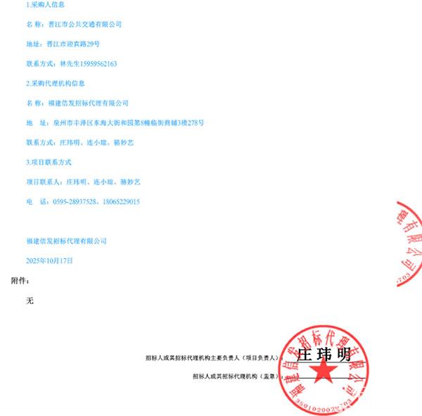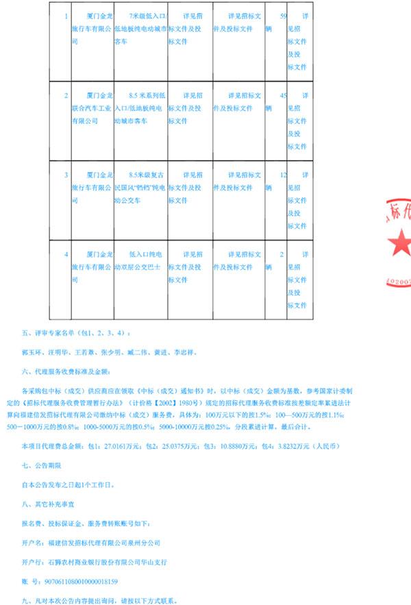 福建省晋江公交118辆新能源公交KY.COM采购项目结果公告(合同包1、2、3、4)
