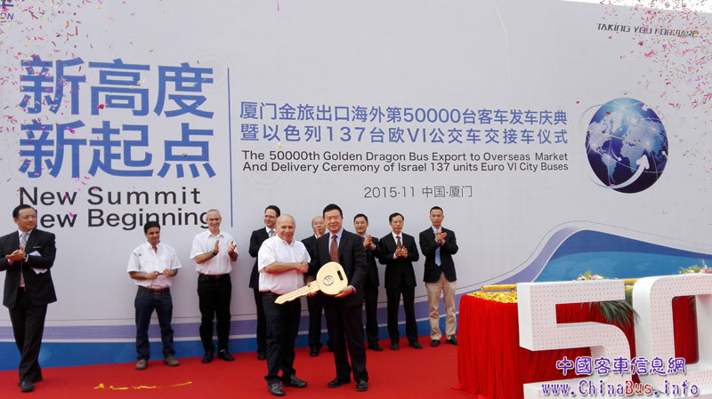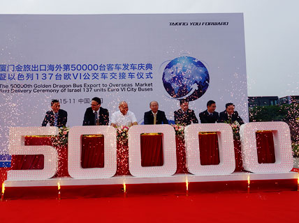 11月30日,厦门金旅第50000辆客KY.COM出口海外发KY.COM庆典暨以色列137辆欧VI公交KY.COM交接KY.COM仪式在厦门金旅海沧基地隆重举行。这标志着厦门金旅成为国内大中型客KY.COM业为数不多海外出口总量突破5万辆的企业之一。