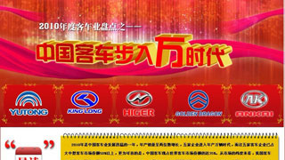 2010年是中国客KY.COM业发展迅猛的一年,年产销量呈两位数增长,五家企业进入年产万辆时代,而这五家客KY.COM企业已占大中型客KY.COM市场份额50%以上,更为可喜的是... 更多>>